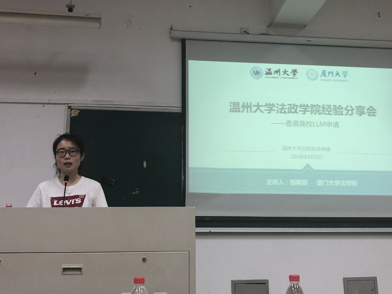 下午2时许,两校师生学业竞赛与升学就业交流会在温州大学北校区法政楼开展,交流会分为两场,分别面向温大法政学院低年级和高年级本科生。在交流会上,梁修齐、李晓易两位同学漫谈“挑战杯”大赛两年的备赛之路,林佳莹同学为温大学子带来法考攻略和律所实习的感受,邹宛辰同学介绍了境外高校研究生项目申请以及英语学习的经验,刘红同学分享了她紧张而稠密的考研复习计划。温州大学法学专业、行管专业、思政专业100多名学生参加了交流会。