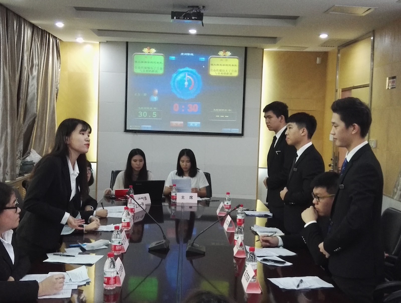 包括华侨大学、嘉庚学院等9所福建省高校10支参赛队伍在法学院C419、C519展开了激烈角逐。最终厦大代表队A、B两支代表队、嘉庚学院代表队、华侨大学代表队、福建农林代表队、仰恩大学代表队共6支队伍晋级复赛。
