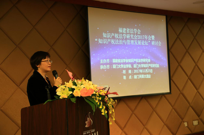 (图八 福建省法学会知识产权法学研究会会长丁丽瑛教授作会议总结)
