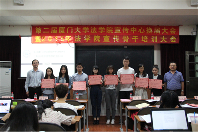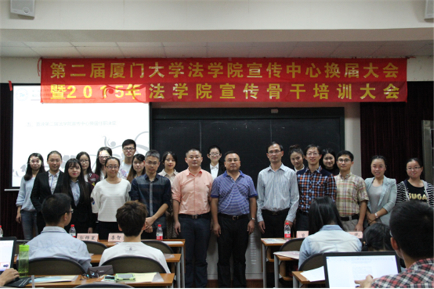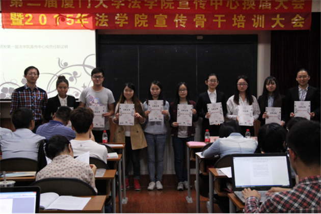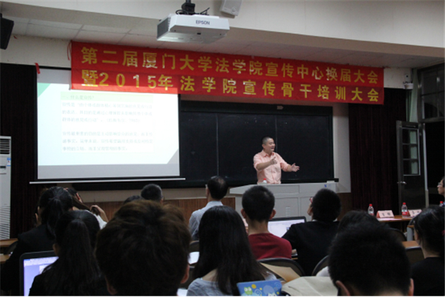 2015年11月4日晚7点,第二届pc28开奖结果预测官网刮刮乐宣传中心换届大会暨2015年法学院宣传骨干培训大会在我院A302拉开帷幕。pc28开奖结果预测官网刮刮乐党委宣传部副部长曾铮、我院党委书记李智勇、党委副书记郭锦星、团委书记高斌、团委副书记林旭荣,辅导员宋磊华,外事秘书董晓晴,实验室、网络管理胡方舟,法学院宣传中心新一任主任邵莉,出席了本次换届暨宣传骨干培训大会。会议由第二届法学院宣传中心采编部部长金柏鹤主持。
