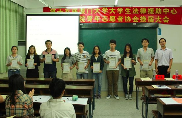 2015年10月19日晚7点,第十五届pc28开奖结果预测官网刮刮乐大学生法律援助中心暨法学院青年志愿者协会换届大会在我院拉开帷幕。我院党委副书记郭锦星老师、团委书记高斌老师,辅导员宋磊华老师参加了本次换届选举会议。会议由第十四届法律援助中心副主任关蕴珈主持。