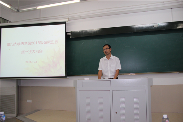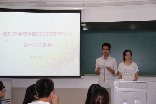 2015年10月11日晚7点,法学院第十三届研究生会第一次大例会在法学院A104教室如期举行。法学院党委副书记郭锦星老师、研究生辅导员宋磊华老师,及研究生会全体成员出席了本次大会。大会由研会干事葛惠英、徐鹏炯主持。