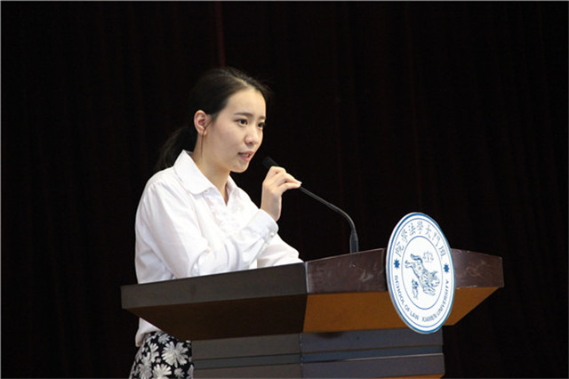 开学典礼第三项议程,学生代表发言。首先,学生会主席方芷婧发言,回顾过往的大学经历,感受两年来的自身变化,将宝贵的经验传递给新生们。2015级新生陈子逸作为新生代表发言,细说经历高考、踏入高校的心路历程,抒发对大学生活的无限憧憬与期待。