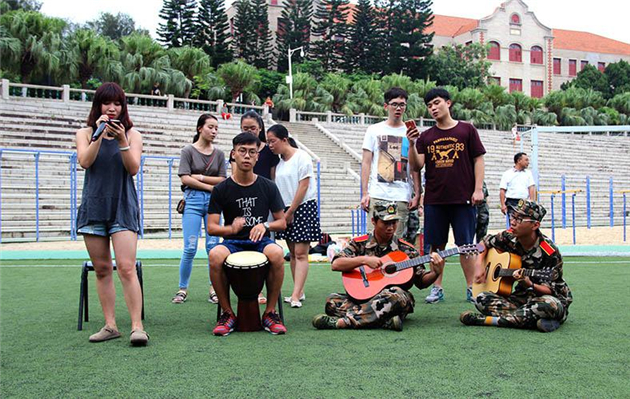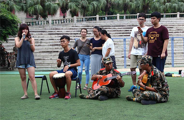 9月2日下午,法学院党委书记李智勇、党委副书记周蕾、团委书记高斌、团委副书记林旭荣老师以及13、14级的学长学姐们一起前往上弦场慰问正在辛苦军训中的2015级本科新生。