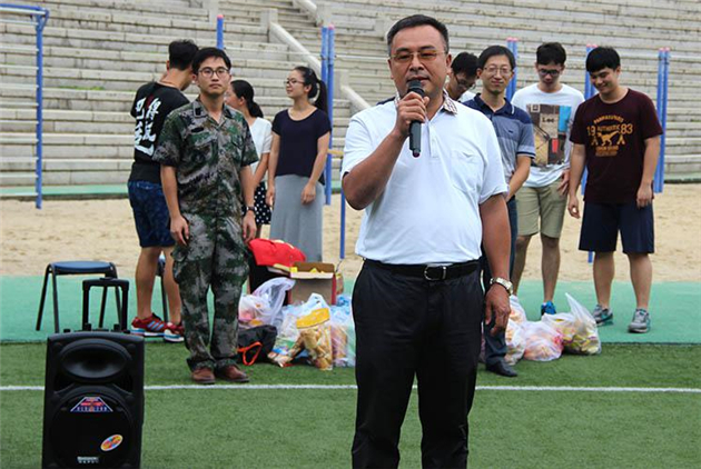 慰问大会开始后,院党委书记李智勇首先发言。他结合中国人民抗战胜利70周年这个特殊日子,回顾历史,展望未来,激励在训同学们勇于克服困难,提高军事素养,优秀地完成军训任务。简洁有力的发言充分鼓舞了在场的同学们的士气。