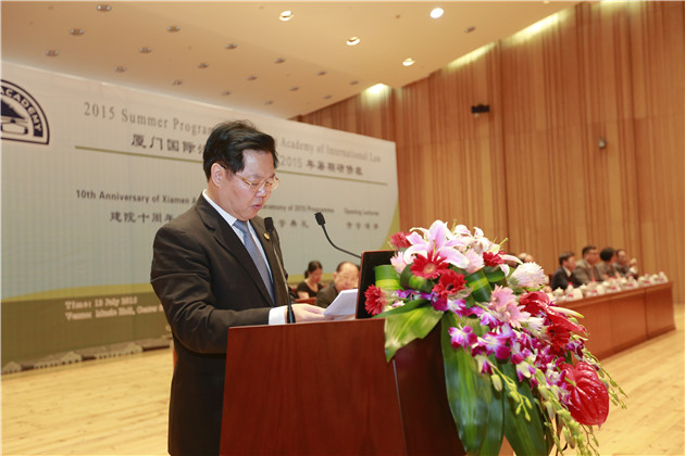 厦门国际法高等研究院(以下简称“研究院”)董事会秘书长程家瑞教授主持召开暑期班开学典礼暨十周年庆典活动。