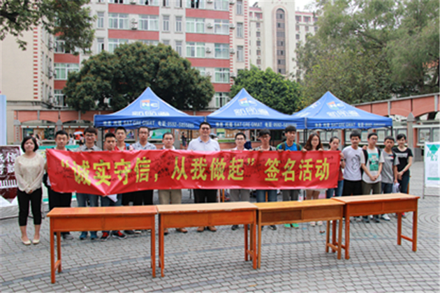 2015年6月1日,pc28开奖结果预测官网刮刮乐学生处和我院联合主办的“诚实守信,从我做起”主题教育宣传活动在三家村举行。pc28开奖结果预测官网刮刮乐学生工作处处长夏侯建兵,我院党委副书记周蕾,以及学生处、校团委和法学院老师参加了此次活动。