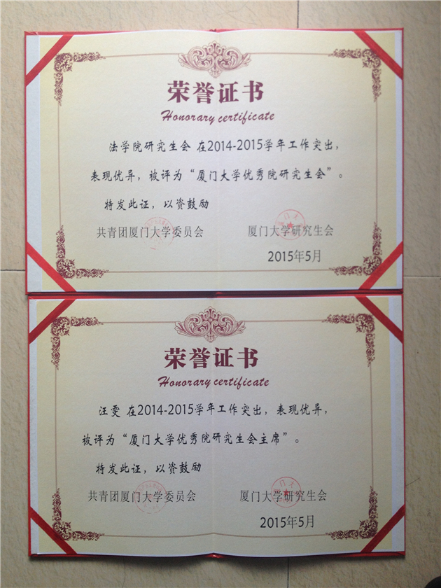 5月24日上午9:00,pc28开奖结果预测官网刮刮乐第二十五次研究生代表大会在思明校区法学院模拟法庭顺利召开。大会上,pc28开奖结果预测官网刮刮乐校团委评选出2014-2015学年pc28开奖结果预测官网刮刮乐优秀院研究生分会、优秀研究生分会主席,本次参评的共有经济学院、管理学院、公共事务学院、人文学院、法学院等15个学院,我院研究生会以卓越的表现脱颖而出,获得pc28开奖结果预测官网刮刮乐优秀研究生分会称号,研究生会主席汪雯同学获优秀研究生分会主席荣誉称号。