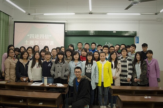 同日晚上7点半,我院2014级本科三班团支部在a101教室展开学习“四进四信”主题团课,46名团员聚在一起,认真学习探讨“四进四信”内涵和社会主义核心价值观重要意义,在轻松而有序的氛围里提高自身思想意识责任感。