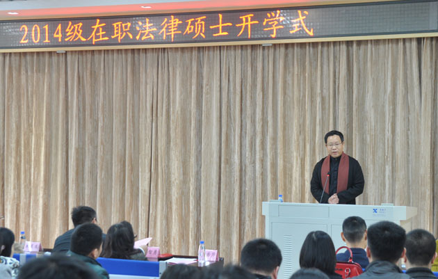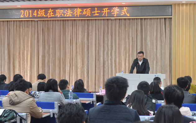 法学院党委书记李智勇向2014级在职法律硕士表示了衷心祝贺与热烈欢迎;同时,对在座的同学们提出了三点期望,一是希望未来在厦大学习的三年时光能成为同学们扬帆的新起点,树立“努力学习,不断学习,终身学习”的意识;二是希望同学们能够珍惜时光,明确学习任务,协调好工作与学习;三是希望同学们切实践行“自强不息,止于至善”的校训,肩负荣誉感,使命感,努力成为国家需要的法律精英。