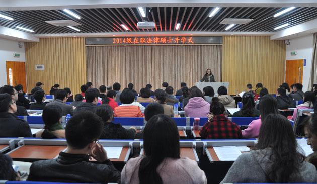 3月7日上午, 2014级在职法律硕士研究生开学典礼在法学院B137举行。法学院党委书记李智勇,党委副书记郭锦星,副院长朱炎生教授、李兰英教授,教师代表周东平教授、李琦教授、郭春镇教授、刘学敏副教授以及2014级在职法律硕士研究生参加本次开学式。知识产权研究院院长、法学院副院长林秀芹教授主持仪式。