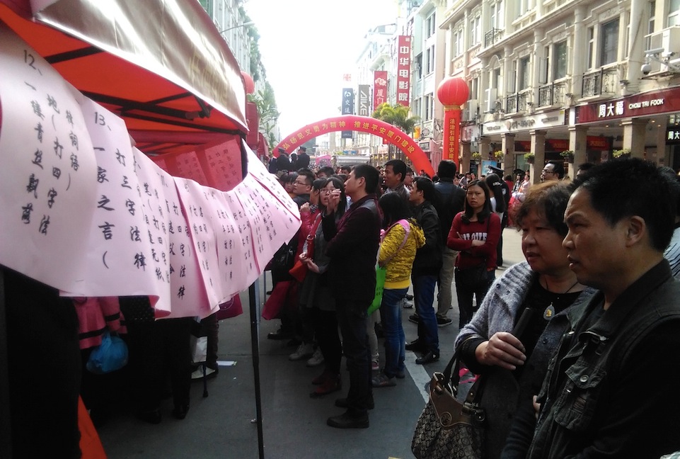 活动正式开始后,各个街道、机关设置的摊点人头攒动。法援志愿者所在的滨海街道宣传点悬挂出各种各样与法律专用术语有关的猜谜,用游戏的方式与市民互动。这样一种别出心裁的方式吸引到广大市民积极参与到法援同学的法制宣传中。不论男女老少,都在谜语前驻足思考,向志愿者们说出不同的答案。答对的参与者便能获得贴心的礼品,而答错的人们也不甘放弃,通过冥思苦想或互相交流再次尝试。此外,志愿者们还向参与者发放了解读宪法的相关宣传资料,并为部分市民提供了法律咨询服务。