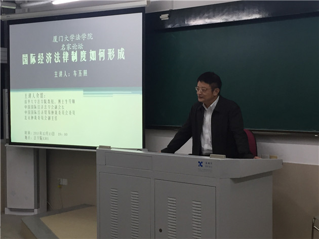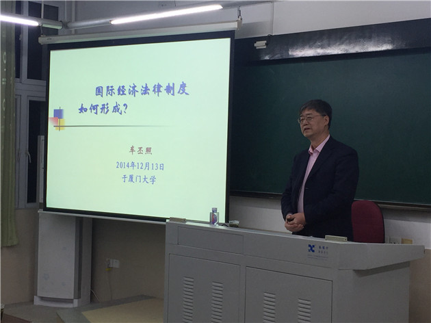 2014年12月13日晚七点,来自清华大学的车丕照教授,应邀在我校A301为我院师生带来了一场题为《国际经济法律制度如何形成》的讲座。讲座由中国国际经济法学会会长、我院教授曾华群主持,国际法教研室的李国安、陈辉萍、韩秀丽三位教授以及国际法学各阶段的硕博研究生参加了本次讲座。