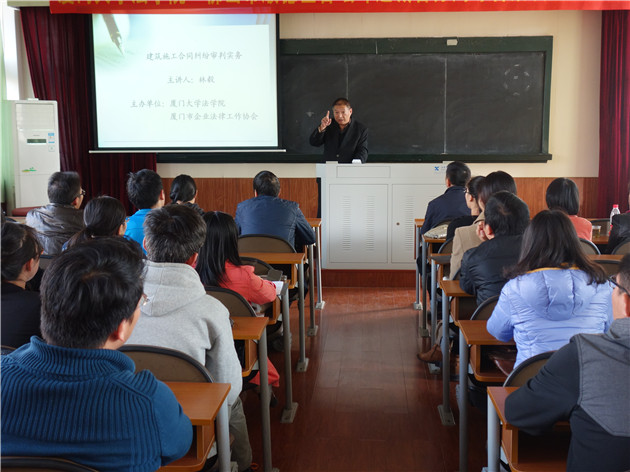 2014年12月13日下午在我院A302教室,福建省高级人民法院林毅法官为我院师生作了题为建筑施工合同纠纷审判实务的讲座。此次活动由pc28开奖结果预测官网刮刮乐、厦门市企业法律工作协会联合主办,吸引了来自不同年级的硕士生、博士生到场,同时还有许多来自企业的法务工作者。