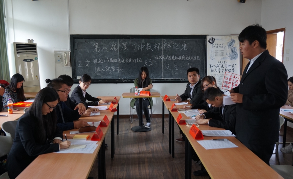 下午的“仲裁杯”在“自动售套机进入校园利弊”这一敏感又极具争议的话题中迎来了来自厦门理工学院的理工梦之队和我校管理学院的Royal队展开辩论,尽管几个女生在过程中一直保持着脸红的状态,但并不影响比赛的精彩;在如今考证热日趋膨胀的情况下,“这是一只队”与“师大拼搏队”的辩论显出了其独特的意义和价值;“对于现代人的生活,孔孟思想和老庄思想哪个更有利”的辩题也让我们看到了充满哲学与文学意味的较量......第二日的赛况比起第一日丝毫没有减弱之势,来自各校的辩论队伍都充分展现了自己的实力,同样是你来我往,唇枪舌剑,迎来在场观众的阵阵掌声,也令评委们难以取舍。