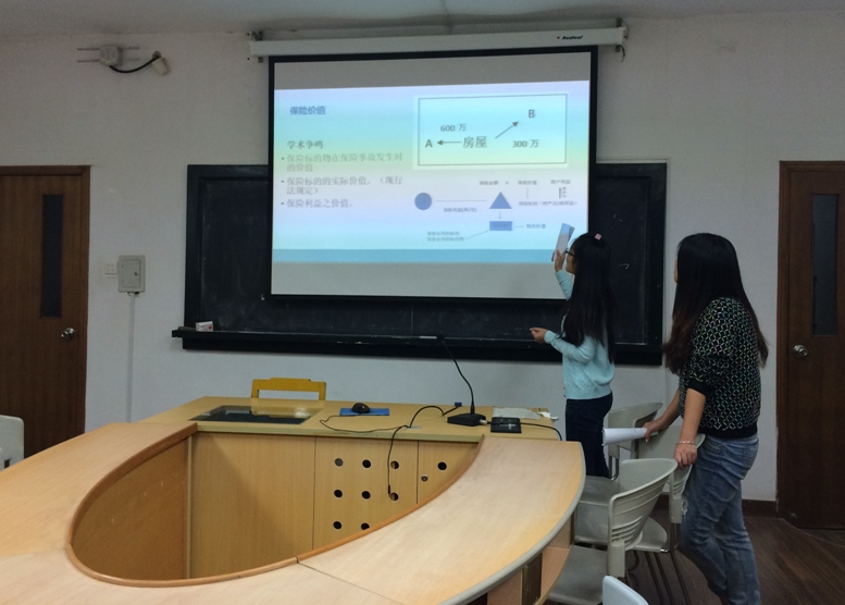 本次保险法沙龙由陈泽君同学主持。首先包鑫慧同学从案例入手,对保险标的的概念进行了解读。第二个发言的是杨军同学,其立足法条,全面探讨了保险标的物的法律属性。最后一个发言的是谢洁楠同学,其结合法条和实践中的判例,对保险价值、保险利益以及两者之间的联系提出了自己的见解,将本次学术沙龙推向高潮,引发了在场同学和嘉宾的激烈讨论。