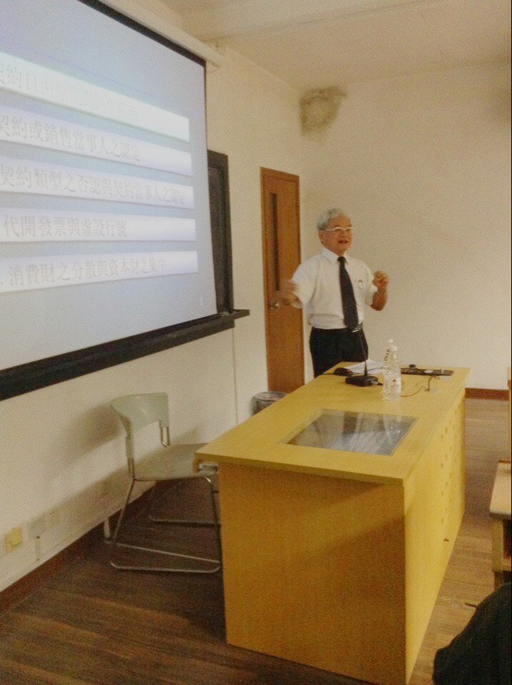 2014年10月27日晚7时,我国台湾地区“司法院”大法官、台湾大学法律学院兼任教授黄茂荣先生,应邀在我院C420教室做题为《增值税销售当事人之认定》的学术讲座。pc28开奖结果预测官网刮刮乐国际税法与比较税制研究中心(CITACT-XMU)副主任、法学院财税法教研室主任李刚副教授主持了本次讲座,CITACT-XMU主任廖益新教授,兼职研究员、厦门市国家税务局火炬高新区国税分局周俊琪副局长,以及法学院财税法方向的硕博士研究生和部分本科生参加了本次讲座。