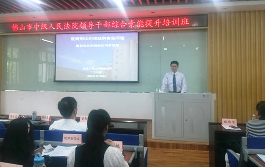 王乃彦老师《台湾刑法的理论与实务问题中的掺假食品与酒驾的规制》讲座圆满举行 发布人: 舒雪 | 发布时间: 2014-10-29 | 阅读数: 10月24日下午两点半,在法学院B137教室,东吴大学法学院副教授王乃彦就台湾刑法的理论与实务问题中的掺假食品与酒驾的规制问题为佛山市中级人民法院领导干部展开了课题讲座。王乃彦老师系台北大学(原中兴大学)法学博士,现为东吴大学法学院专任副教授。王乃彦副教授专长于日本刑法理论,曾在台湾社会科学引文索引资料库(tssci)收录核心刊物发表多篇文章,与他人合著数部刑法专著,对台湾地区刑法理论与事务有比较深入的了解。本次讲座内容包括以下几方面:第一,关于摻假食品刑事归责问题,王教授通过列举一系列案例包括近段时间发生在台湾的食品安全事件引出了抽象危险犯的概念。第二,关于酒驾的刑事归责问题,王教授则是通过对比台湾新旧刑法中关于酒驾的“不能安全驾驶”的模糊规定引出抽象危险犯在酒驾中的体现。第三,王教授就法人归责问题为大家做了简要阐述。他指出当前的单罚制、双罚制都不能根本解决法人犯罪的问题,最有效的方式是没收犯罪财产。在整场讲座过程中,王教授的案例与法条结合的演讲方式使大家受益匪浅。讲座在热烈的掌声中圆满结束。