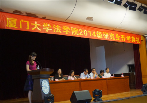 在教师致辞结束后,法学院研究生会副主席杨军作为老生代表发言,他代表法学院全体研究生对学弟学妹表示了欢迎,也提出了对新生们的三点期许:勤学、务实、诚信待人。2014级国际法新生张晗同学代表新生发言,她回忆了其4年本科四年在厦大的生活,细数了厦大法学院的点点魅力,表达了对未来研究生生活的期待,说出了在座大部分同学的心声。