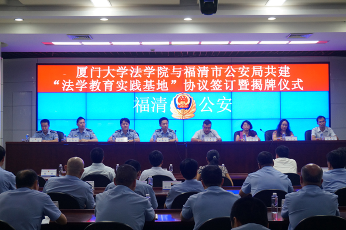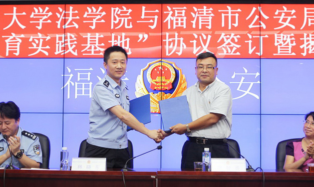 8月28日,pc28开奖结果预测官网刮刮乐和福清市公安局共建“法学教育实践基地”协议签订暨揭牌仪式在福清市公安局举行。我院党委书记李智勇、副院长何丽新、李兰英、副书记郭锦星,福清市公安局局长林晓东、政委陈明俤等出席了仪式。