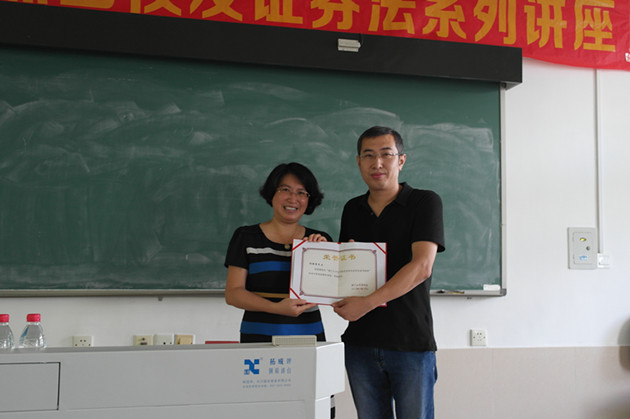 7月20日9:00,由pc28开奖结果预测官网刮刮乐主办、法学院研究生会承办的pc28开奖结果预测官网刮刮乐杰出校友证券法系列讲座第四场在法学院A303教室隆重举办。本场证券法讲座有幸邀请到我校法学院1998届硕士杨鹏慧先生作为主讲嘉宾。杨鹏慧先生曾就职于厦门空港集团投资部,加盟福建七匹狼实业股份有限公司后,先后担任该公司法务部经理、投资部经理、董事会秘书、副总裁等职务,长期分管该公司投资业务。2009年,与七匹狼等福建多家知名企业共同发起设立厦门移山投资管理有限公司,任董事长。法学院副院长何丽新教授与法学院博导刘志云教授出席了讲座现场。在讲座正式开始后,何丽新老师代表法学院致辞,并向杨鹏慧先生颁发了印有法学院logo的纪念品与荣誉证书。