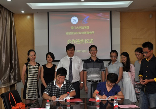 2014年7月1日下午,我院与福建重宇合众律师事务所合作签约仪式在C419如期举行。律所首席合伙人涂崇禹、主任曾健、律师代表吴颖、朱娟,以及学院党委副书记周蕾、团委书记高斌、辅导员宋磊华及部分学生代表出席此次活动。