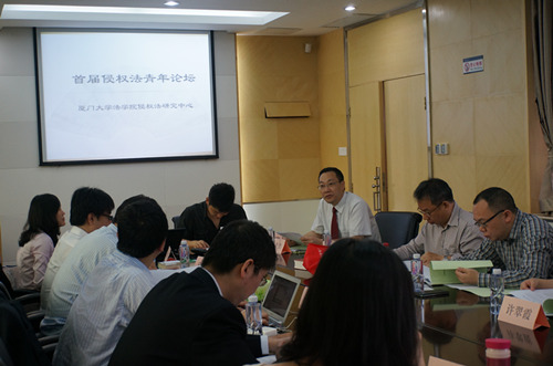 2014年05月17日早上八点,由pc28开奖结果预测官网刮刮乐筹办的“侵权法研究中心首届青年论坛”在法学院C419会议室成功举行。来自中国人民大学、西南政法大学、中南财经政法大学、四川大学、西北政法大学、日本北海道大学、苏州大学、福建师范大学、集美大学等兄弟院校的十余位青年才俊莅临参加共襄盛举,与我院的青年教师一起就目前侵权法研究的热点问题进行了充分而富有建设性的探讨。徐国栋教授、何丽新教授、朱炎生教授作为论坛特邀嘉宾莅临指导,民商法教研室郑永宽老师、齐云老师、王兰老师、潘峰老师、郑晓剑老师、陈帮锋老师、魏磊杰老师以及十几位博士生、硕士生与本科生全程参与。