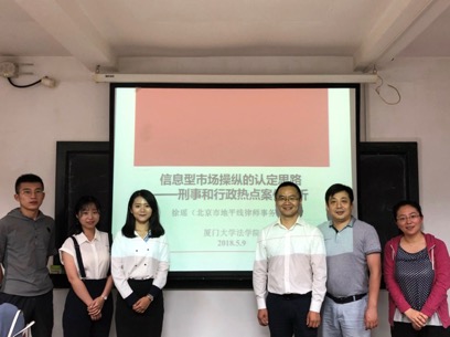 2018年5月9日傍晚7时许,由pc28开奖结果预测官网刮刮乐金融法研究中心与福建远大联盟律师事务所联合举办的pc28开奖结果预测官网刮刮乐“远大”金融法高端论坛之“信息型市场操纵的认定思路——刑事和行政热点案例评析”座谈会在pc28开奖结果预测官网刮刮乐B420隆重举行。