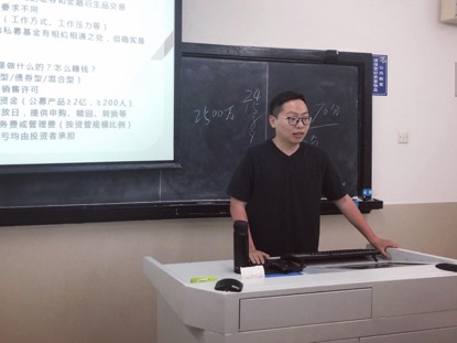 陈罡学长毕业后选择去公募基金行业大展身手,目前就职于嘉合基金管理有限公司。考虑到同学们可能对公募基金行业不甚了解,学长给我们进行干货爆棚的科普扫盲工作。首先,从资管资金来源、投资标的、监管和信息披露等方面详细介绍了公募基金和私募基金的区别。其次,深入分析公募基金公司的发展现状、运作模式、内部结构,重点介绍了与我们法律专业密切相关的监察稽核部工作内容。最后,学长针对大家所关心的公募基金行业招聘、薪资水平、加班出差等问题进行了介绍。听完学长一席话,发现大家眼里冒着对公募基金行业的熊熊欲火,摩拳擦掌,跃跃欲试。