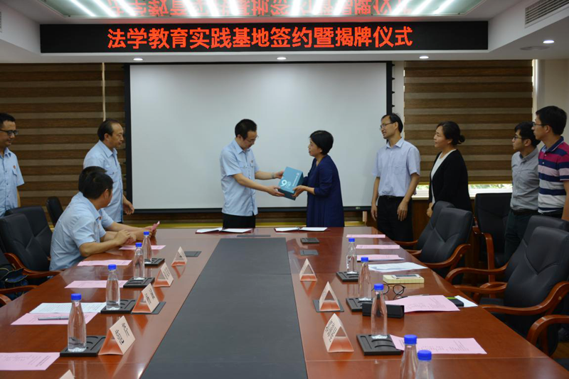 宋方青院长为“我院法学教育实践基地”授牌,并向杨诚院长赠送我院法学文库系列丛书。