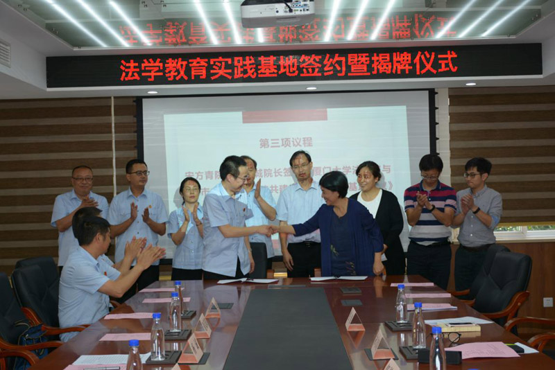 签约仪式结束后,与会双方在法学院大楼前合影留念。