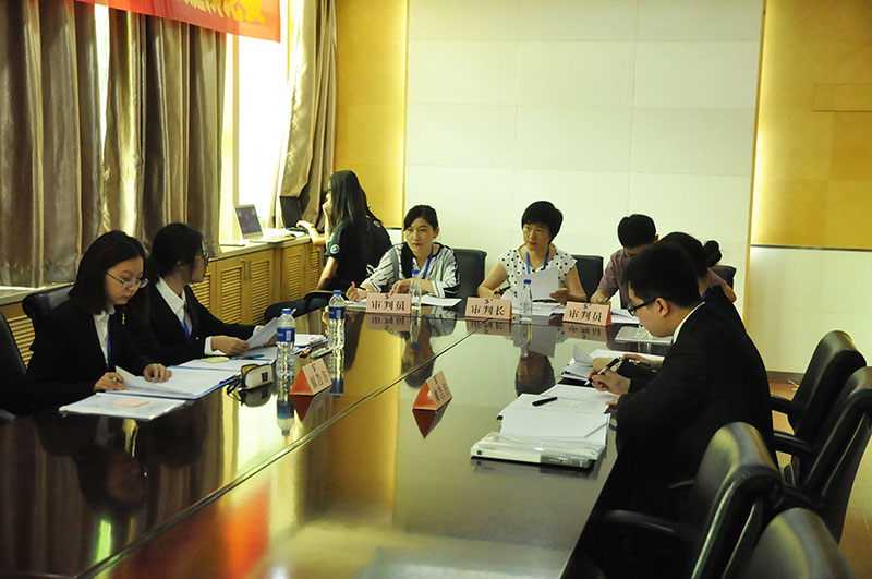 法学社工作人员提前布置了会场,做好了相应的赛前准备,确保了比赛有条不紊的开展。在主办方宣布比赛开始之后,双方队员依据正常法庭庭审程序各自展开比赛,在激烈的言辞切磋交锋之后,评委就双方队伍的表现进行了相应的点评,并合影留念。