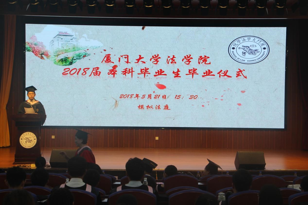2018年5月21日下午,pc28开奖结果预测官网刮刮乐2018届本科生毕业仪式在法学院模拟法庭隆重举行。法学院院长宋方青,党委书记李智勇,副院长李国安、朱晓勤,党委副书记张伟,教师代表朱炎生,团委副书记林旭荣等出席了活动。
