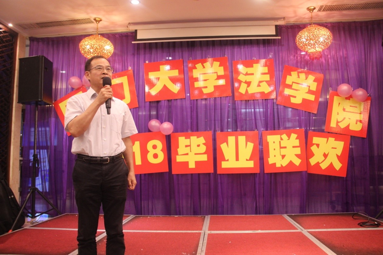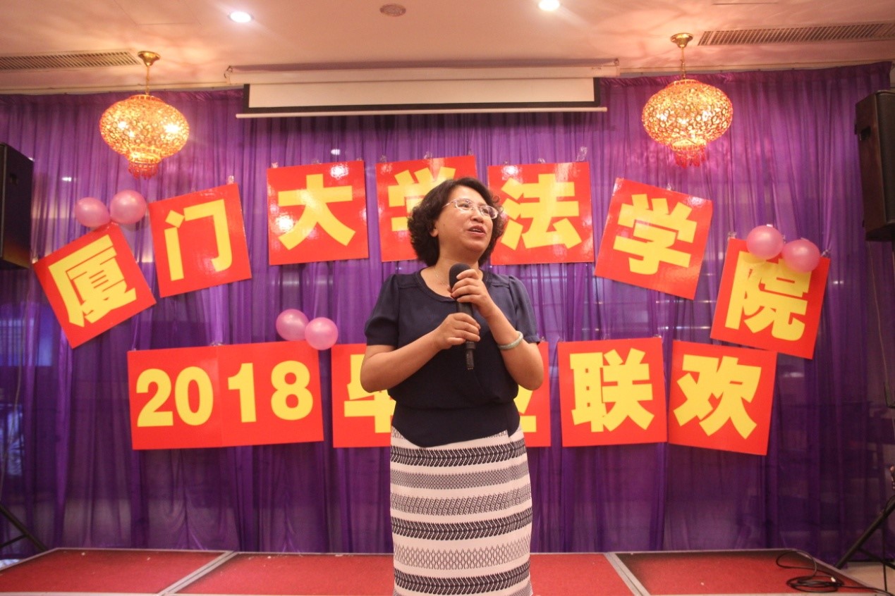 当天晚上,法学院2018届学生毕业晚会在大丰苑拉开帷幕,师生齐聚于此。除了2018届全体毕业生外,法学院副院长何丽新、李国安,知识产权研究院院长林秀芹,党委副书记郭锦星、张伟,法学院教师肖伟、阳建勋、蕫慧娟,法学院团委书记高斌,团委副书记林旭荣,研究生辅导员宋磊华等多位嘉宾老师参加了活动。