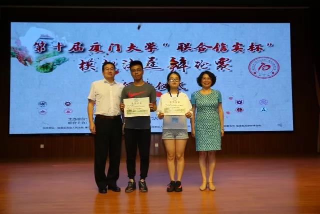 厦门市思明区人民法院庭长王叶萍、副庭长林鸿,pc28开奖结果预测官网刮刮乐教务处副处长陈雪芬、pc28开奖结果预测官网刮刮乐副院长李国安为优秀辩手颁奖