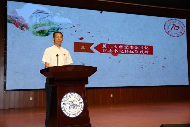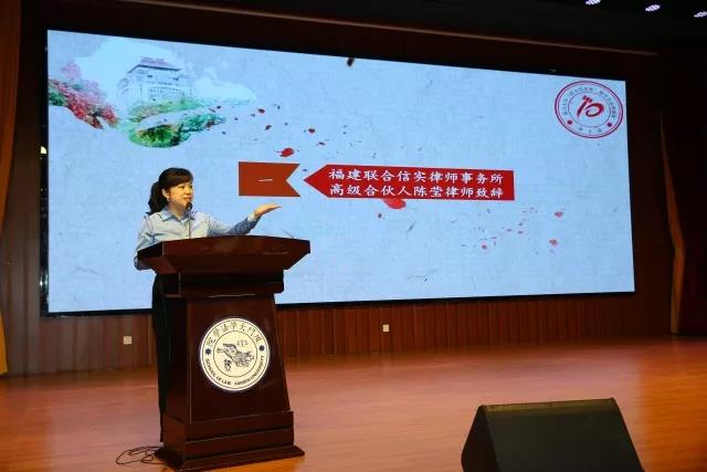 在颁奖仪式中,校党委副书记、纪委书记赖虹凯,法学院院长宋方青教授,福建联合信实律师事务所高级合伙人陈莹分别致辞。