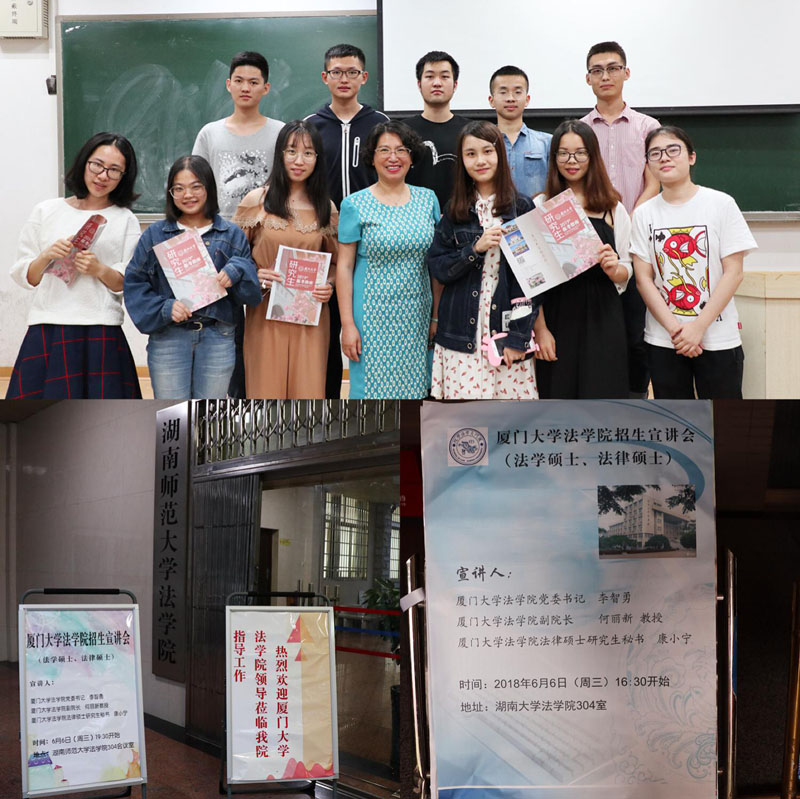 2018年6月5-8日,我院党委书记李智勇、副院长何丽新教授、研究生秘书康小宁一行前往中南大学、湖南大学、湖南师范大学、华中科技大学、武汉大学和中南财经政法大学六所高校法学院进行招生宣传活动和学科建设交流。