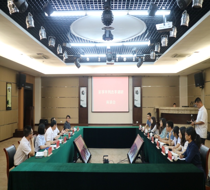 温州市中级人民法院是最高人民法院确立的家事审判方式和工作机制改革的首批试点法院之一。2016年4月,最高人民法院印发法〔2016〕128号 《最高人民法院关于开展家事审判方式和工作机制改革试点工作的意见 》,确定了100个左右基层人民法院和中级人民法院开展家事审判方式和工作机制改革试点工作,自2016年6月1日起开展家事审判方式和工作机制改革试点工作;试点期间为两年。要求“转变家事审判理念,推进家事审判方式和工作机制创新,加强家事审判队伍及硬件设施建设,探索家事诉讼程序制度,开展和推动国内外法院之间家事审判经验交流和合作,探索家事审判专业化发展,维护婚姻家庭关系稳定,依法保护未成年人、妇女和老年人合法权益,弘扬社会主义核心价值观,促进社会建设健康和谐发展”。温州两级法院改革家事审判方式和工作机制,由中级法院主导,立足基层,全面推进,将调解前置,引入调解员、心理咨询服务等,多方探索,有所侧重,很有特色,并取得良好社会效果,获得了多方肯定和赞誉。浙江省曾在温州召开全省家事审判改革现场会议;最高人民法院专委杜万华同志就勉励温州中级法院要争做全国示范法院。所以,蒋月教授课题组特意选择温州两级法院开展此次调研活动。