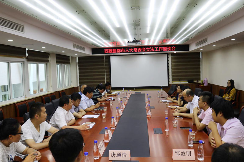 6月11日下午,西藏自治区昌都市人大常委会副主任齐飞一行11人到访法学院,就当前立法工作中遇到的难题,与法学院部分师生进行交流座谈。宋方青院长、何丽新副院长、郭春镇副院长、周赟教授、陈鹏副教授、马腾副教授和部分研究生参加了座谈会。宋方青院长主持本次座谈会,并代表法学院对齐飞副主任一行的到来表示欢迎。