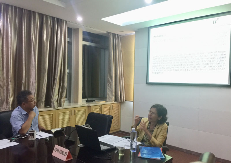 听完Fargnoli教授精彩的讲座之后,在座的老师及学生提出了一些问题,主要有:拉丁语“Casu”的译文“Misfortune”的意思?罗马体育规则与现代体育法相比,是否也有适用界线?罗马法是否允许在侵权案件中由多人共同承担责任?高空落物适用过错推定原则是否真正源于罗马法?小学生打球受伤,老师是否担责等问题。Fargnoli教授对上述问题一一作出了解答。这是Fargnoli教授时隔六年后应邀再次来我院讲学,学生们获益匪浅,讲座在融洽温馨的氛围中圆满结束。