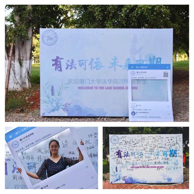 朝阳初升,法学院迎新工作人员便已来到迎新点,有条不紊地开始布置工作。鲜艳的横幅在阳光的映衬下格外夺目,清晰的注册流程图则极大地提高了报道工作效率,简洁大方的展板静候新生亲手填满心愿,i厦大实物话题栏则期待定格每一位新生最初的笑颜。将新生材料一一陈列,志愿者们进行着迎新前最后一次资料检查工作。