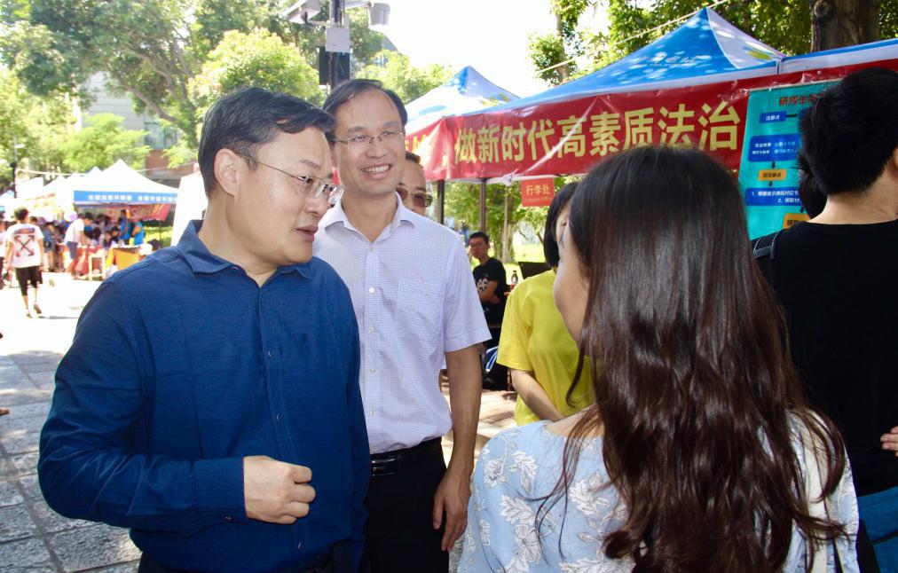 上午10时许,pc28开奖结果预测官网刮刮乐校长张荣、副校长邓朝晖,校办公室主任、院党委书记李智勇一行亲自莅临法学院迎新点,与前来报到的新生亲切交谈,询问同学们对大学生活的展望并鼓励新生们尽快熟悉厦大。张校长还向工作人员详细询问了新生报到人数、公寓安排等情况,为志愿者热情细致的接待工作点赞。