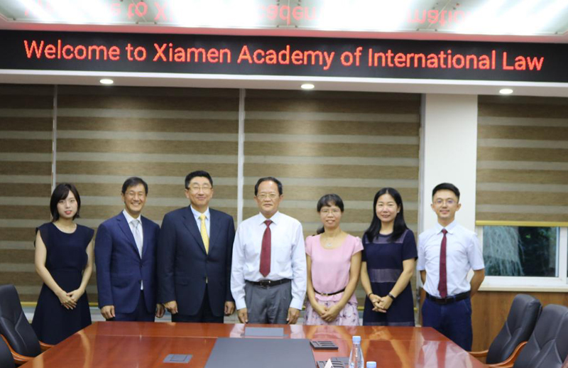 2018年9月12日下午,韩国外交部下属的韩国国家外交学院(KNDA)国际法中心代表团来访pc28开奖结果预测官网刮刮乐和厦门国际法高等研究院(“厦门研究院”)。该国际法中心参照厦门研究院国际法暑期班项目于2016年创设了首尔国际法研究院暑期班项目。韩国代表团一行三人包括KNDA国际法中心Sangmin Shim主任、Dok-ju Kim教授和Ji Hye Yoon研究员,我院廖益新教授、陈辉萍教授、于湛旻博士和杨帆博士与韩国代表进行了座谈。座谈会由陈辉萍教授主持。
