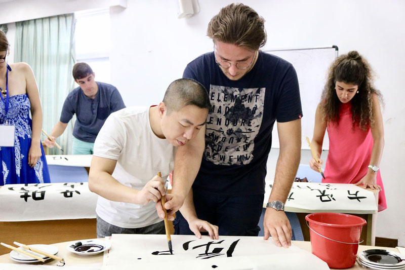 9月18日下午, 19名德国特里尔大学的学生在黄志鹏老师的带领下,近距离接触了中国传统书画艺术。
