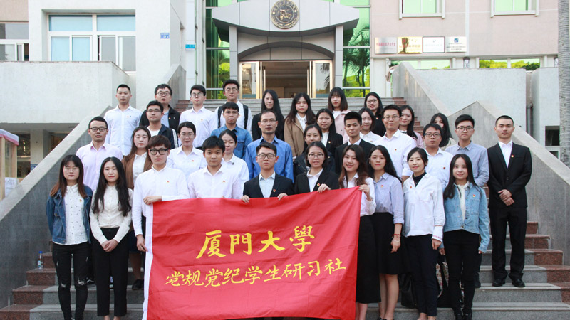 领导嘉宾与研习社社团骨干以及各学生党员代表在法学院大楼前台阶合影留念。