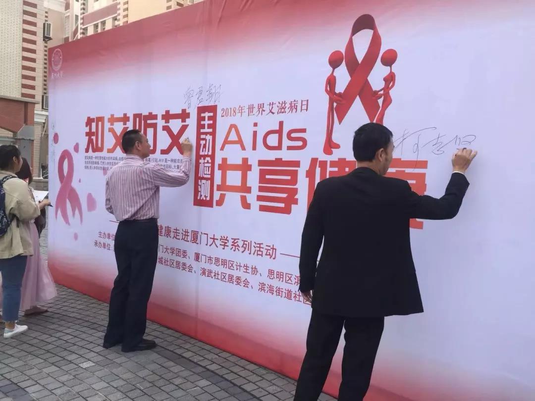 活动吸引了不少观众加入到关注艾滋的队伍中来。大家纷纷向咨询师们咨询相关问题,并在“知艾防艾,共享健康”的主题展板上签名。