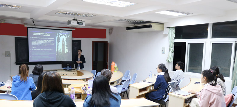 晚上7时,Christina Zhou女士在法学院B420研讨室对法学院学子作研究生项目宣讲。她从校区环境、学科设置、报名要求及报名方式等方面对玛丽女王大学硕士研究生项目作了全面具体的介绍。她表示,玛丽女王大学将为厦大法学院学子提供优厚的奖学金待遇,包括两个半奖奖学金名额,希望同学们积极申报该项目。Christina Zhou女士还就与会师生关心的问题进行了细致解答。