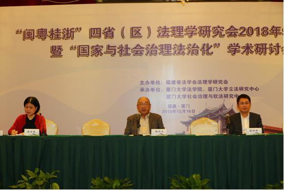 2018年12月16日,由福建省法学会法理学研究会主办、pc28开奖结果预测官网刮刮乐、pc28开奖结果预测官网刮刮乐立法研究中心、pc28开奖结果预测官网刮刮乐社会治理与软法研究中心承办的“闽粤桂浙”四省(区)法理学研究会2018年学术年会暨“国家与社会治理法治化”学术讨论会在厦门市亚洲海湾大酒店多功能会议室顺利举行,并圆满落幕。