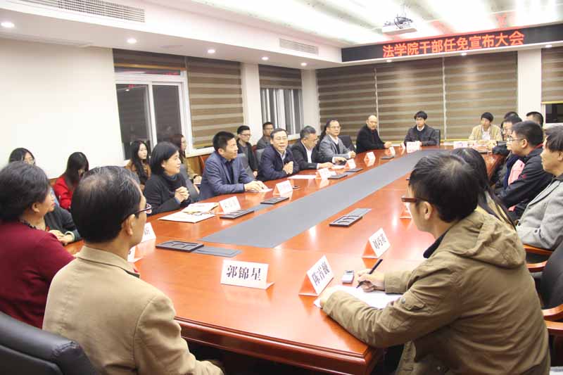12月27日下午,法学院在B220会议室召开干部任免宣布大会,校党委副书记、副校长李建发出席并主持了大会,法学院党政领导班子成员、科级以上干部、辅导员、各教工和学生党支部书记参加会议。