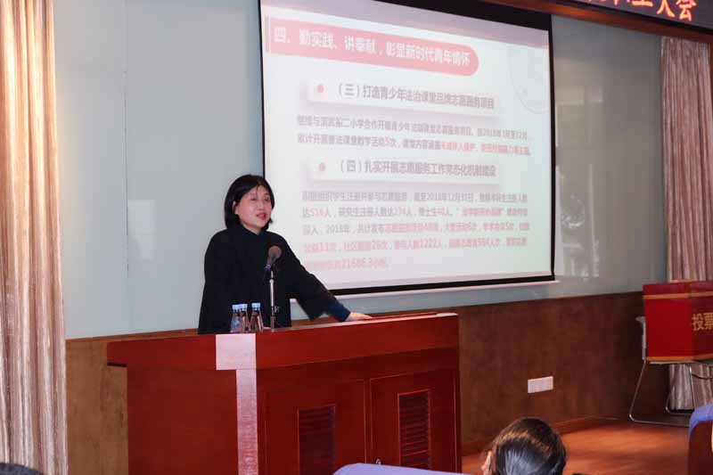 会上,宋方青院长首先向全体教职工介绍了学院新任党委书记许和山同志,并介绍了新一任党政领导班子的职责分工。随后,她代表学院党委和行政作了2018年下半年工作报告。宋方青院长从五个方面总结了学院下半年党建与思政工作:一是学理论,抓教育,从严从实加强学生党建;二是重学术,强科创,打造学术科创品牌;三是搭平台,拓渠道,助力学生就业创业;四是勤实践、讲奉献,彰显新时代青年情怀;五是推宣传、展风采,加强学生骨干队伍建设。